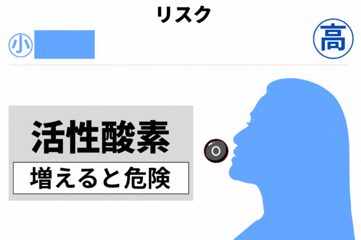 本来、活性酸素は体内に侵入する菌や異物を溶かす為に必要なものですが、増えすぎると逆に悪さをします。